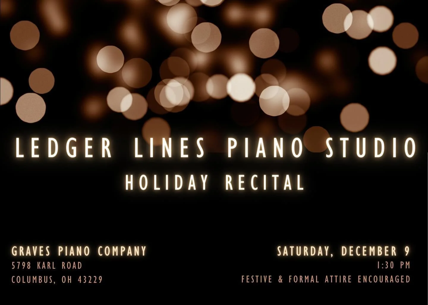 Ledger Lines Piano Studio is a high-caliber piano studio in Columbus, Ohio. Students of all ages are welcome, from complete beginners to the musically advanced!