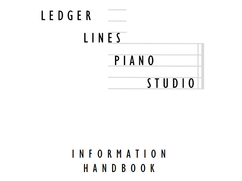 Ledger Lines Piano Studio Handbook includes information for parents, student expectations, tuition rates and an explanation of where your money goes, and why to choose Dr. Tim.